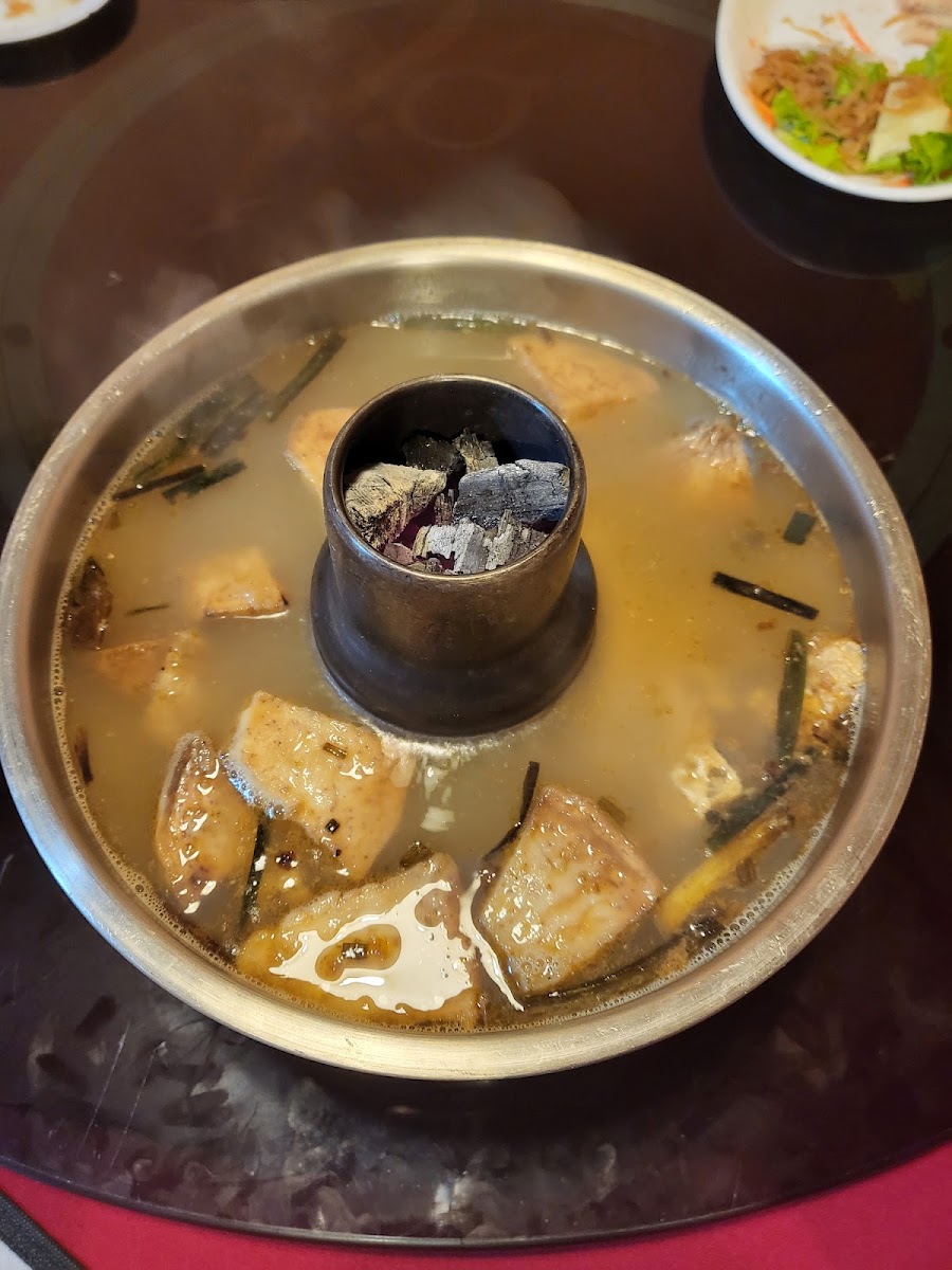 Three of us had a most interesting and memorable dinner savouring traditional Teochew food cooked over charcoal stoves. This way of cooking is a dying art and demands good control of handling the wok and other cooking vessels. Eating here is like dining in some grandfather's kitchen. Don't expect modern restaurant ambience and speed in serving the dishes. This is a simple very traditional Chinese eatery run by family, 7 days a week in a shop house in Chinatown. The chef team is father and son. Restaurant started 138 years ago by the young 24 year old chef's great grandfather. Super friendly. They will come out and explain the dishes if you wish to engage in conversation. We ordered a lot of dishes for 3 pax. Served course by course. Cooked the old way using pork lard and no msg is used. All the photo in the photos are excellent. Highly recommend to food connoisseurs who appreciate traditional cooking. No msg used - chef said so and we couldn't detect any Dishes we ate: steamed pomfret, braised goose feet noodles, crab claws tunghoon, fish maw pottage, oyster omelette, durian ice cream. Remarks: goose feet braised 36 hours, durian ice cream and egg noodles are made in house. Pork lard used are fresh and not the deep fried type
